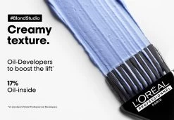 De krachtige formule van Blond Studio Lightening Powder Bonder Inside werkt perfect samen met specifieke Oils-Developers oxidanten, die zijn geformuleerd met 17% olie. Hierdoor bereik je verbluffende resultaten zonder het haar te beschadigen.